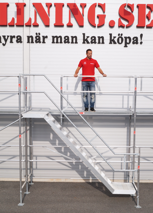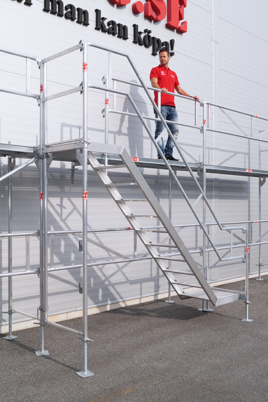 Komplettera din ställning med ett trapptorn 4 m, Byggs separat utanför ditt ställningspaket. En säker och mycket funktionell uppgångslösning som gör att du även får med dig material upp i din ställning. Passar våra 4 m Altrad RAM ställningspaket Enligt arbetsmiljöverkets nya regler AFS 2013:4 skall alla fasadställningar normalt kompletteras med trapptorn.