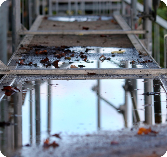 Plattformar bör läggas horisontellt med mellanlägg så att de inte slår sig. Rör bör placeras i särskilda ställningsställ för att undvika att de böjs eller repas. Direkt kontakt med marken bör alltid undvikas, särskilt om underlaget är fuktigt.